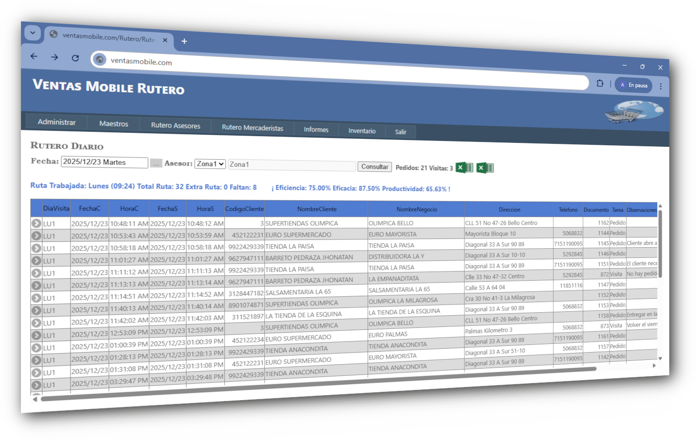 Con herramientas como rutero inteligente, mapa interactivo y reportes de productividad, Ventas Mobile ayuda a las empresas a aumentar la eficiencia del equipo de ventas, reducir costos operativos y mejorar la toma de decisiones.